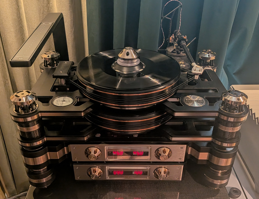 This was after a brief listen to the system upon our arrival. The reason we decided to get more info is because we couldn't believe what we were hearing. We cannot recall the exact track playing at the time, but whatever it was, it caught our attention immediately, and wouldn't let go of it. We are talking about smooth, detailed, life-like sounds that feel like they are oozing out of a world-class reel to reel or vinyl setup. There's no way this is digital!? But, to prove his point, Bill played us a track on the Kronos turntable, and sure enough, we couldn't tell the difference between the vinyl and the digital (only the occasional clicks and pops gave it away). WHOA!